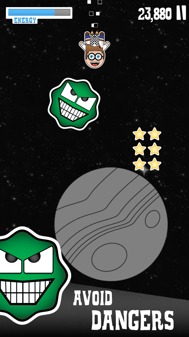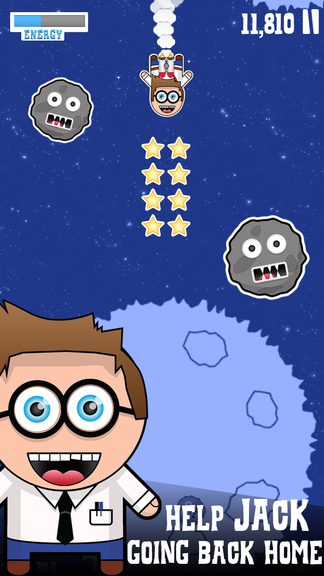 Back To Earth, a unique adventure in Space. Help Jack, a young geek who got warped to a distant planet going back Home. You will assist Jack avoiding the Dangers on the way and getting Power-Ups. Beware of the Black Stars... Be Fast and Witty to clear each mission and Finally get Back To Earth !
